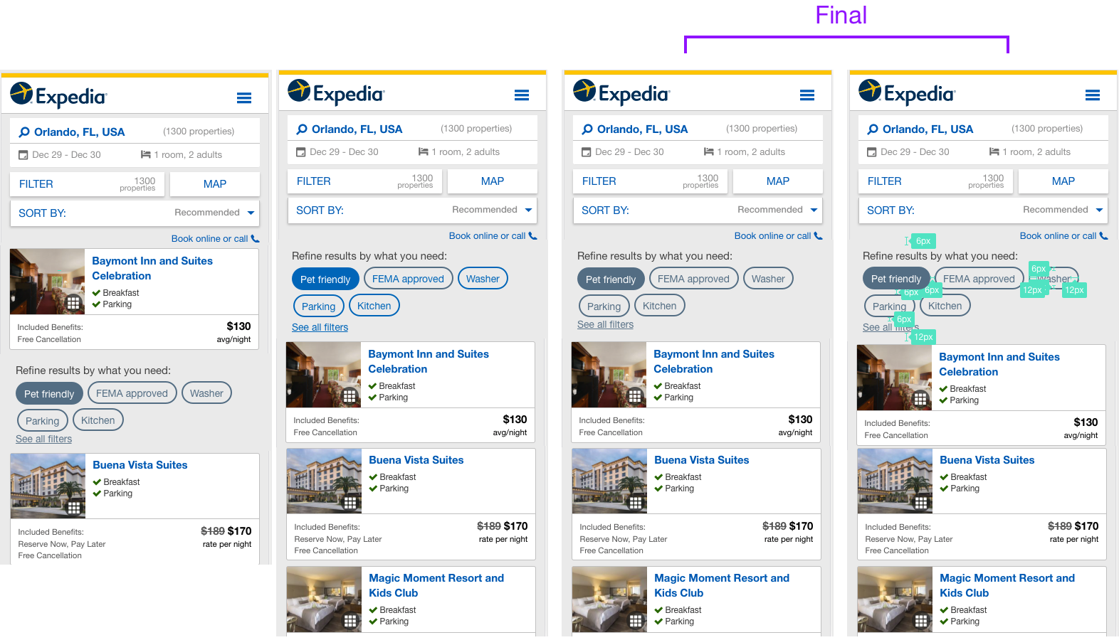 According to user interviews I conducted, people commonly feel fearful, worried, and overwhelmed when evacuating their home due to a natural disaster. When evacuees are looking for lodging, their top criteria are pet-friendly properties, kitchen availability, parking, and FEMA-reimbursement. (FEMA stands for Federal Emergency Management Agency and essentially provides eligible citizens with housing reimbursement.)